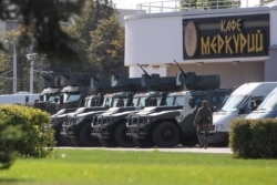 В Минске ОМОН не пустил протестующих на некоторые улицы. Эта фотография сделана рядом с мемориальным комплексом "Минск – город-герой", местом, куда демонстранты приходят каждое воскресенье: