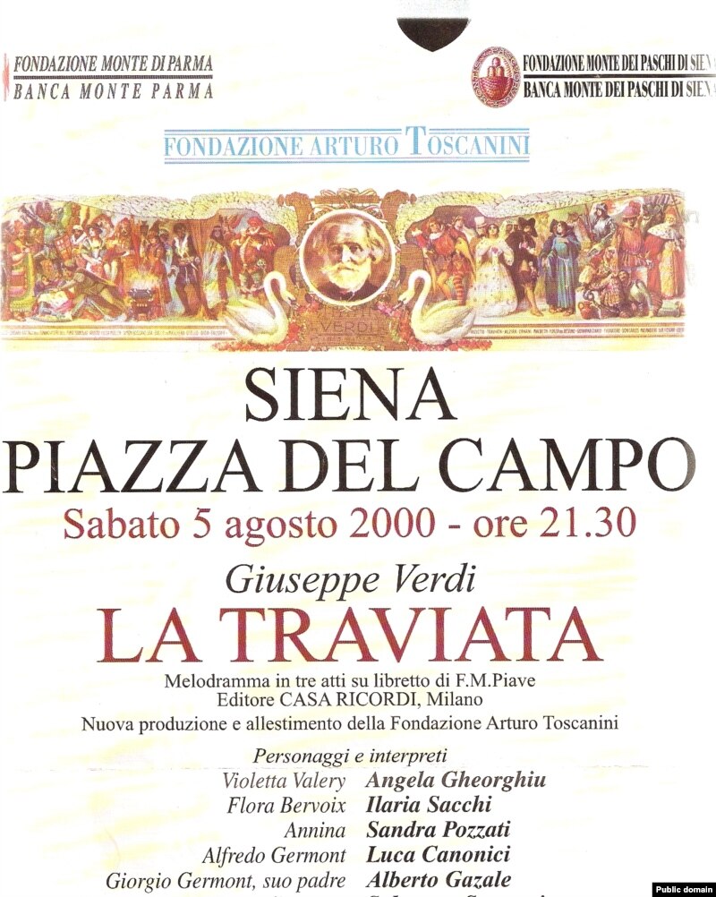 Interviul a fost realizat la Siena, în Italia, în ajunul unui spectacol excepţional cu opera Traviata de Verdi. Un spectacol în aer liber, în piaţa medievală a Sienei, Il Campo, cu participarea orchestrei Fundaţiei Arturo Toscanini, dirijata de Romano Gandolfi, la care au asistat circa 30 de mii de spectatori, veniţi din întreaga Toscană.