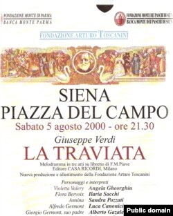 Soprana Angela Gheorghiu spune că a fost atrasă la Siena de noutatea spectacolului: Traviata este prima producţie de operă, montată în piaţa medievală a oraşului.