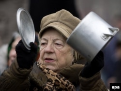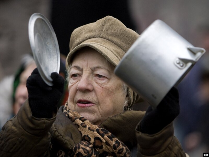 Pensionarii protestează la Chișinău (în februarie 2010)