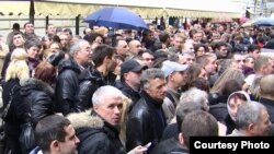 Tatiana Nogailîc: „E plin de umbrele aici, aşa aproximativ vreo 300 de persoane sînt. Şi Alianţa, şi alte partide şi-au dat interesul să ajungă la noi informaţia şi au venit personal. Asta e ceva pozitiv, fiindcă noi aşteptăm ceva schimbări în ţară, aşteptăm ca această criză constituţională să fie rezolvată, fiindcă majoritatea cu care am discutat doreşte să revină în patrie, majoritatea doresc schimbări, locuri de muncă, doresc ca copiii lor să circule liber în Europa, doresc ca copiii lor să crească în ţara noastră ”.