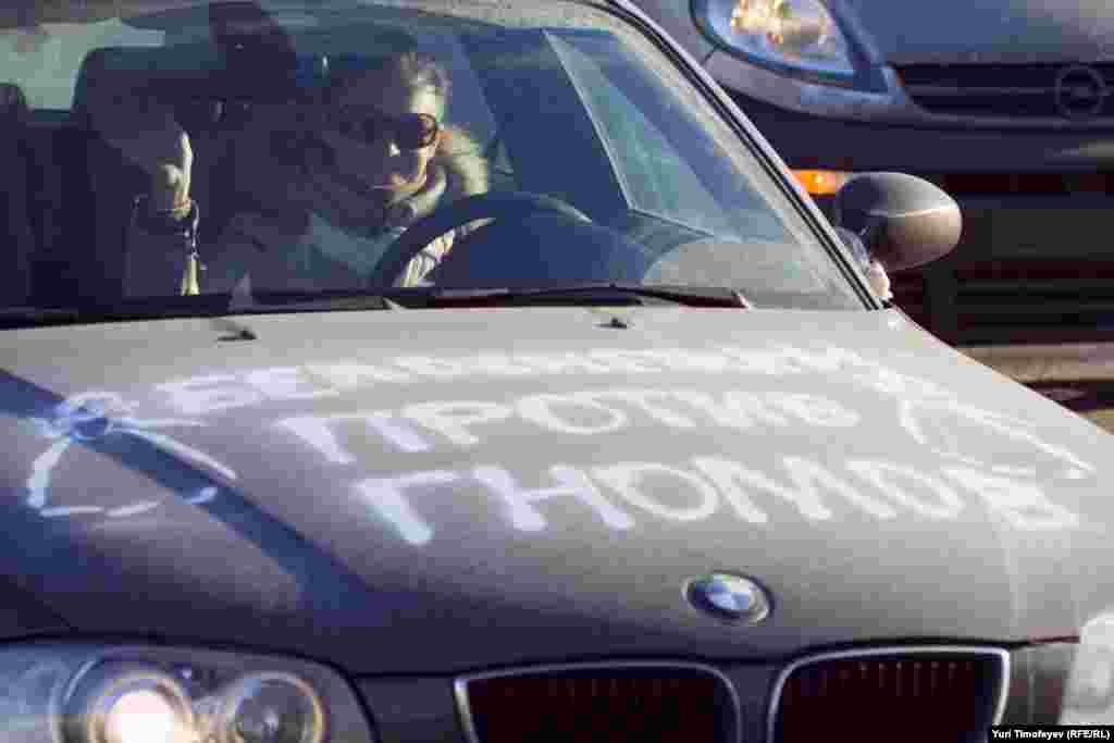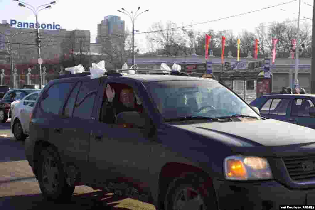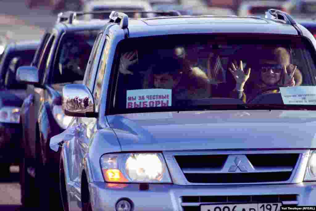 В воскресенье, 29 января в Москве автомобилисты провели акцию в поддержку честных выборов: ехали по Садовому кольцу в машинах, украшенных белыми лентами, белыми шариками и другими символами чистоты выборов.