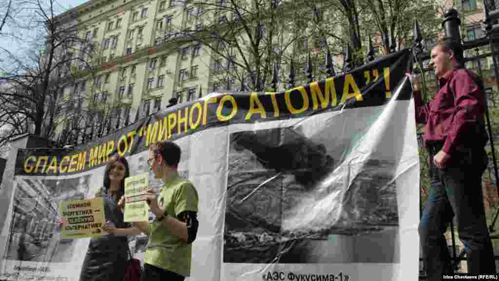 В годовщину аварии на Чернобыльской АЭС в Москве у здания Росатома прошла театрализованная акция "Спасем мир от мирного атома". Ее организаторы – партия "Яблоко", движения "Открытый берег", "Среда обитания", Московское общество защиты природы и Социально-экологический союз.