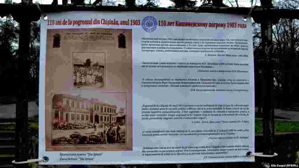 La Chișinău a avut loc un meeting comemorativ în amintirea victimelor pogromului țarist din 1903. La comemorare au participat premierul în exercițiu, Vlad Filat, Alexandr Bilinkis, președintele Comunității evreiești din R. Moldova, ambasadorii Statelor Unite, României, Israelului și Ucrainei, împreună cu alte oficialități locale, membri ai comunității evreiești și elevi din Chișinău. (Foto: Alla Ceapai/REL)