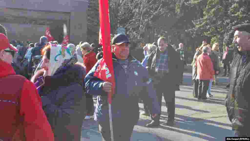 Deputaţi comunişti şi simpatizanţi ai Partidului Comuniştilor au marcat 7 noiembrie, ziua revolutiei bolșevice, la monumentul lui Lenin din Chișinău. Foto: Alla Ceapai