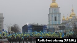 Demonstranții scandează lozinci împotriva președintelui Viktor Ianukovici și cer eliberarea din închisoare a fostului premier Iulia Timoșenko.