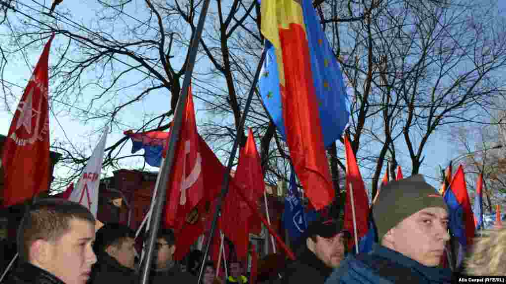 Comuniștii au început joi un protest numit ”anti-summit” la reprezentanța UE din capitala Moldovei, în vreme ce la Vilnius se pregătea să înceapă summitul Parteneriatului Estic. La demonstrația pașnică, supravegheată de câteva sute de polițiști, participanții au scandat ”Libertate!”, ”Moldova!” și ”Rușine!”.