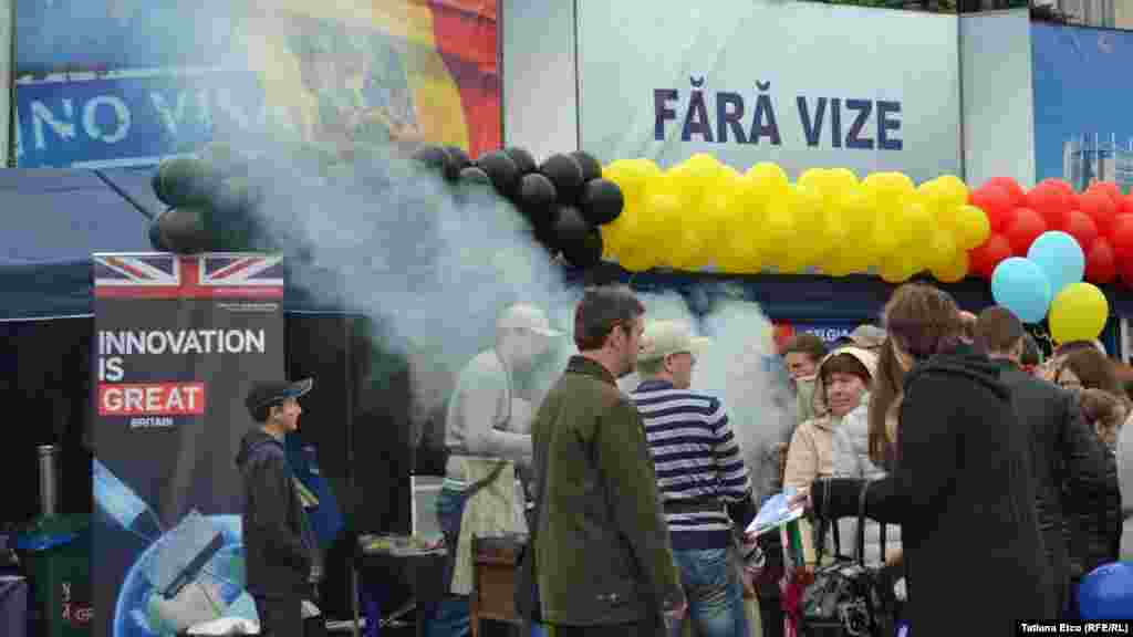 Orașelul European improvizat în Piața Marii Adunări Naționale din Chișinău cu ocazia Zilei Europei și deliciile sale culinare.