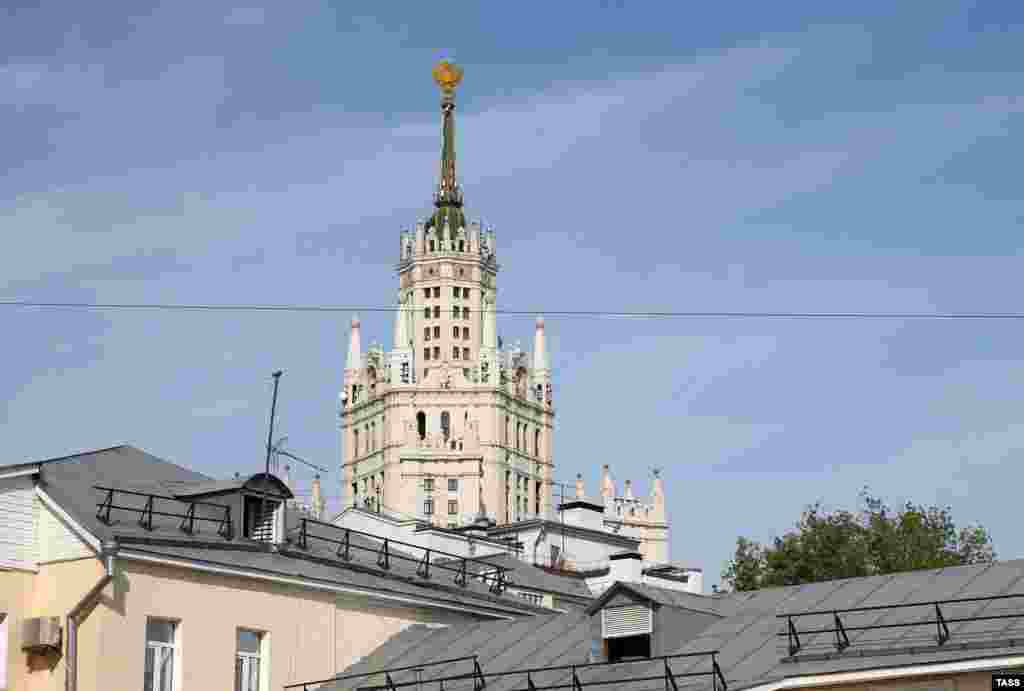 În noaptea de 20 august, persoane necunoscute au instalat drapelul Ucrainei pe un zgârie-nori în centrul Moscovei, pe bulevardul Kotelniciskaia, şi au adăuga vopsea albastră pe steaua aurie din vârful clădirii. Drapelul a fost dar jos cu ajutorul alpiniştilor din serviciul situaţiilor excepţionale.