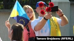 Susţinătorii mesajului „Pace pentru Ucraina” s-au adunat în faţa ambasadei Ucrainei în Republica Moldova. Cele câteva zeci de persoane şi-au exprimat susţinerea faţă de poporul ucrainean care luptă de câteva luni pentru independenţă, integritate şi parcurs european. Lilia Carasciuc, preşedinta Platformei Naţionale a forumului societăţii civile din Parteneriatul Estic, organizatoarea marşului de solidarizare cu poporul ucrainean este de părere că acordul de încetare a focului, anunţat la sfârşitul săptămânii trecute este mai degrabă, unul formal: