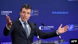 În Ucraina, a continuat Rasmussen, Rusia a lansat o serie de acţiuni militare ilegale pentru că „vrea după toate aparențele să-şi întărească influenţa în ţările din vecinătatea apropiată şi să împiedice aceste state să adere la NATO sau Uniunea Europeană”.