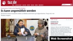 Astfel începe unul din primele comentarii din presa germană dedicat alegerilor de ieri din Moldova. Autoarea articolului, din ziarul berlinez „die tageszeitung” (taz), Barbara Oertel, din care am citat şi care este o bună cunoscătoare a situaţiei din răsăritul Europei, nu uită să atragă atenţia asupra deficitelor sistemului democratic din Moldova care afectează imaginea ţării şi care declanşează reacţii imprevizibile ale electoratului. Faptul că tocmai Partidul Socialist (PSRM), orientat spre Kremlin, a luat cele mai multe voturi este în opinia ziaristei şi un rezultat al deciziei discutabile de a i se retrage Partidului „Patria” dreptul de participare la scrutin.
