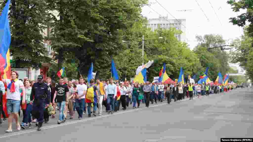 Mii de oameni au participat azi la un marş unionist pentru comemorarea a 203 ani de la alipirea Basarabiei la Imperiul Rus. Acţiunea a început în piaţa Marii Adunări Naţionale, unde pe fundalul cântecelor şi discursurilor patriotice participanţii au votat formarea unui Bloc al Unităţii Naţionale care să promoveze în continuare ideea unirii Republicii Moldova cu România ca soluţie pentru problemele cu care se confruntă cetăţenii. Potrivit organizatorilor, la marş au participat peste 25 de mii de persoane.