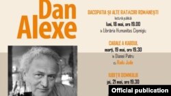 Zilele acestea la București are loc un eveniment pe care l-am putea numi „săptămâna Dan Alexe”. Jurnalistul, scriitorul, realizatorul de fime documentare și corespondentul Europei Libere la Bruxelles Dan Alexe a venit în capitala României pentru a-și lansa al doilea volum, „Dacopatia și alte rătăciri românești”, publicat de editura Humanitas, și pentru proiecția a două din cele patru filme documentare regizate de el, „Cabala la Kabul” și „Iubiții Domnului”, într-o serie organizată de spațiul cultural alternativ din București cunoscut sub numele de Dianei Patru. Săptămâna a început cu lansarea la librăria Humanitas Cișmigiu a volumului „Dacopatia și alte rătăciri românești”, eveniment la care Dan Alexe a explicat mai întîi pe scurt termenul de dacopatie: