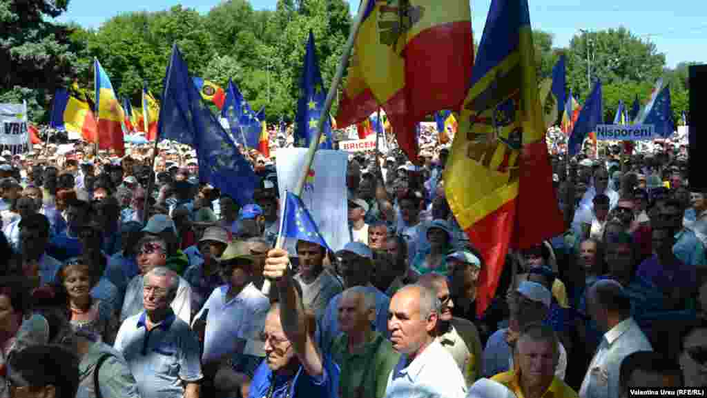 La Chișinău s-au desfășurat astăzi, duminică 7 iulie, două demonstrații de protest împotriva politicii guvernamentale și a corupției în Moldova, organizate de Platforma DA și de către Partidul Liberal. Imagine de la evenimentele de la Chișinău realizate de Valentina Ursu.