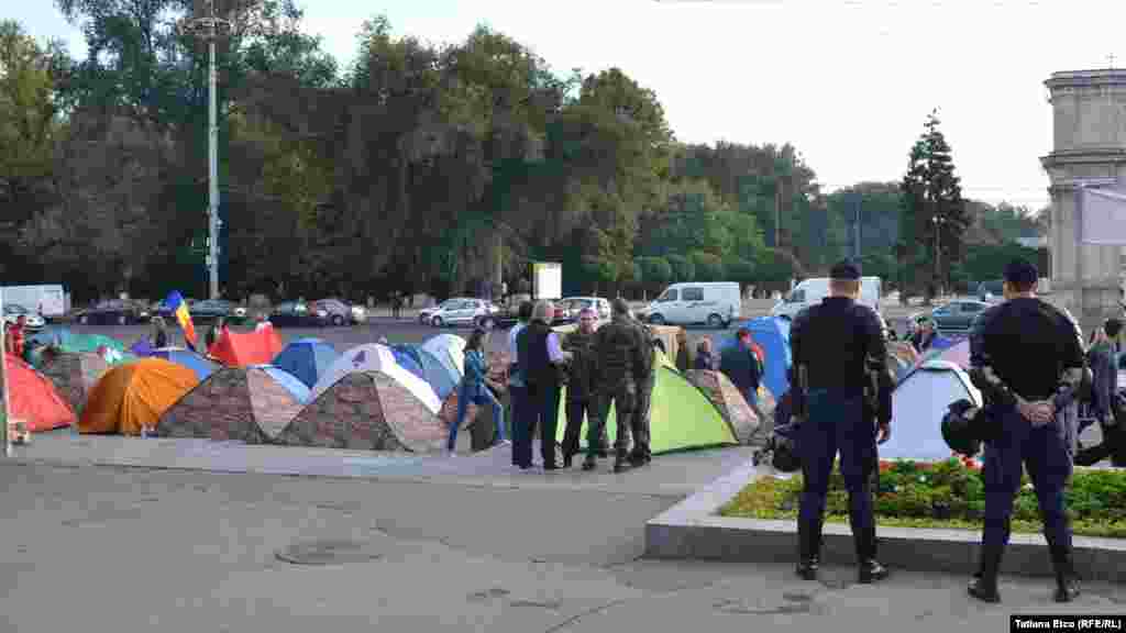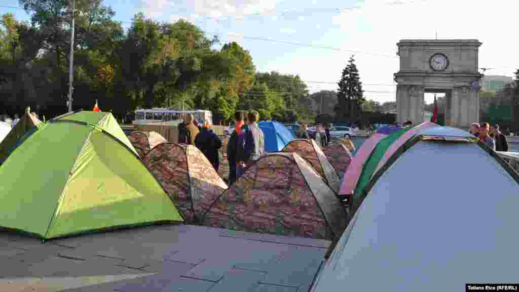Câteva zeci de corturi au fost instalate duminică, 6 septembrie, la îndemnul Platformei Civice „Demnitate și Adevăr”, care a organizat un protest în masă împotriva „guvernării oligarhice și corupte”. Oamenii au declarat că vor rămâne în ceea ce ei au numit „Orășelul Demnității” și vor protesta până nu le vor fi îndeplinite toate revendicările. Principalele cereri sunt alegeri parlamentare anticipate, demisia președintelui Nicolae Timofti, a guvernatorului Băncii Naționale și a procurorului general în urma furtului miliardului de euro din bănci.