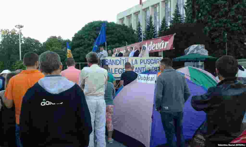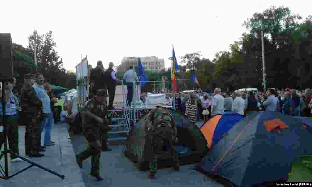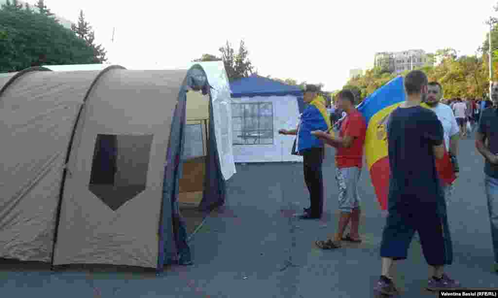 Protestatarii se autoorganizează - au improvizat o cantină, un punct medical, strâng gunoiul după ei și au arendat și două WC-uri ecologice. O galerie foto de Valentina Basiul, la finele primei zile după instalarea corturilor.