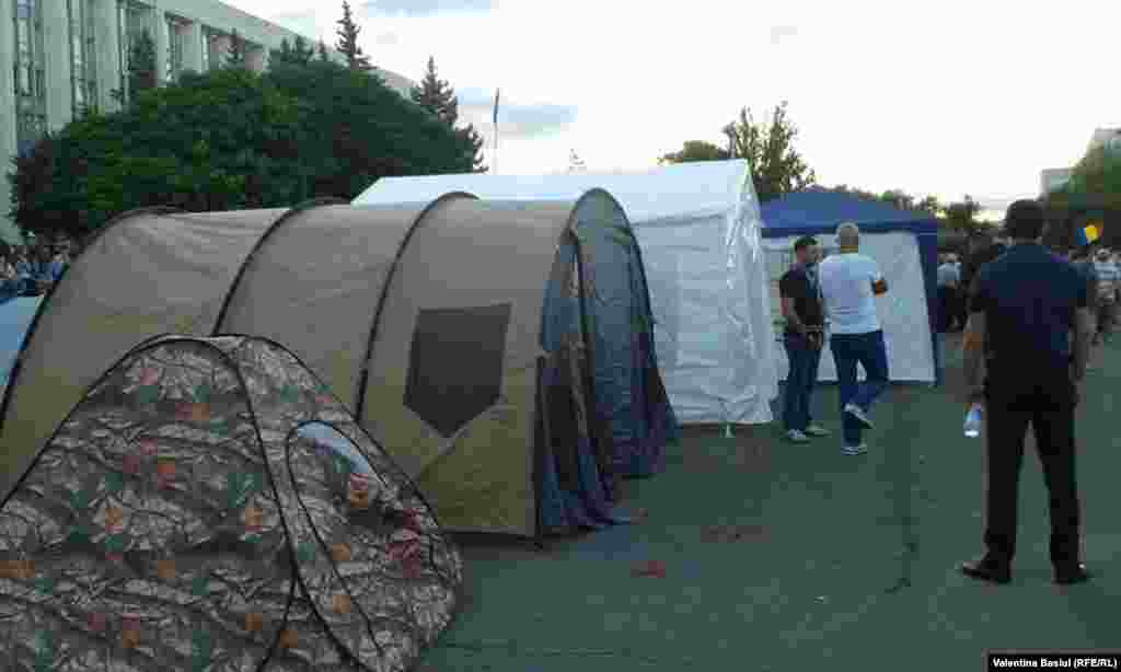 Protestatarii se autoorganizează - au improvizat o cantină, un punct medical, strâng gunoiul după ei și au arendat și două WC-uri ecologice. O galerie foto de Valentina Basiul, la finele primei zile după instalarea corturilor.