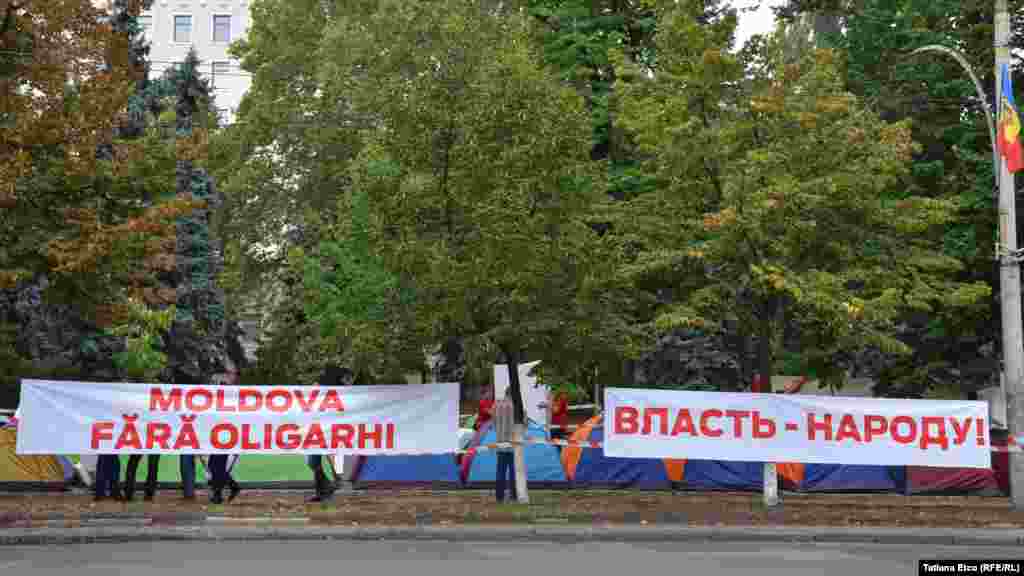 Corturi ale Partidului Socialist și ale Partidului Nostru în centrul Chișinăului