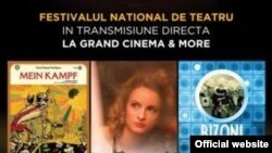 Seria de transmisiuni în direct, se arată în declarație de presă a FN, va debuta pe 23 octombrie, la ora 20:00 cu difuzarea piesei „Mein Kampf” de George Tabori, în regia lui Alexandru Dabija, producţie a Teatrului Naţional Cluj-Napoca, care va deschide Festivalul Naţional de Teatru pe scena Teatrulului „I.L.Caragiale” din Bucureşti.
