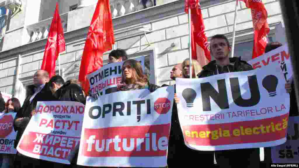 Zeci de simpatizanţi şi membri ai Partidului Socialiştilor au protestat astăzi în fața Agenţiei Naţionale pentru Reglementare în Energetică (ANRE). Protestatarii au cerut menţinerea tarifelor nemajorate la energia electrică şi gaze naturale, dar şi demisia conducerii ANRE. Săptămâna viitoare expiră moratoriul instituit de ANRE la începutul lunii septembrie, când a fost suspendată pentru 60 de zile scumpirea energiei electrice şi a gazului. Pe 3 septembrie, reprezentanţii Agenţiei au spus că doresc un audit extern la companiile energetice ca să verifice cât de justificate au fost scumpirile operate de Agenţia de reglementare, rezervându-şi dreptul să revină asupra deciziei, după expirarea celor două luni de moratoriu. Dacă tarifele vor fi majorate PSRM a avertizat că va organiza proteste de amploare.