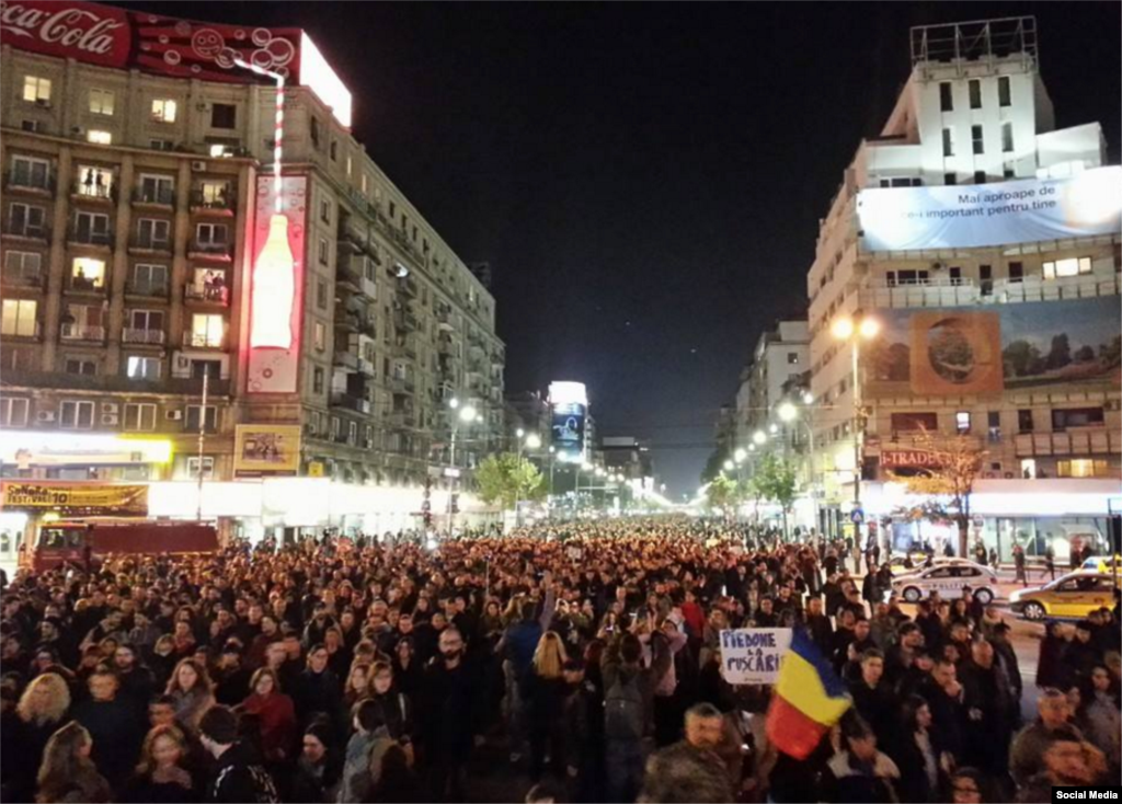 Protestatarii au ieșit în stradă strigînd „Corupția ucide!”, o aluzie la delăsarea autorităților care permit funcționarea de cluburi și de discoteci fără respectarea normelor de prevenire a incendiilor, și de salvare în caz de incendii. Vineri 30 octombrie, 27 de persoane și-au pierdut viața pe loc - altele cinci au decedat ulterior la spital - după declanșarea unui incendiu la clubul Colectiv în timpul concertului formației Goodby to Gravity. Între cei decedați se află și doi dintre membrii trupei