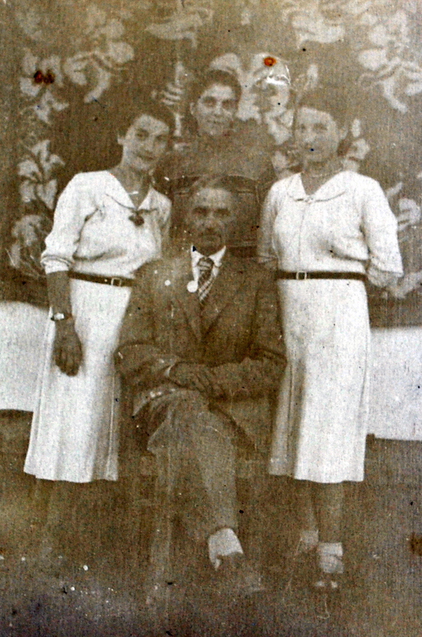 Tatăl surorilor Alecu CaleaValea alături de Silvia (stânga), Olga (dreapta) și soția Eudochia, după reuniunea familială. Sculeni, circa 1960
