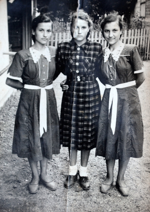 Surorile CaleaValea (de la stânga la dreapta): Olga, Janeta și Silvia în fața casei de la Sculeni