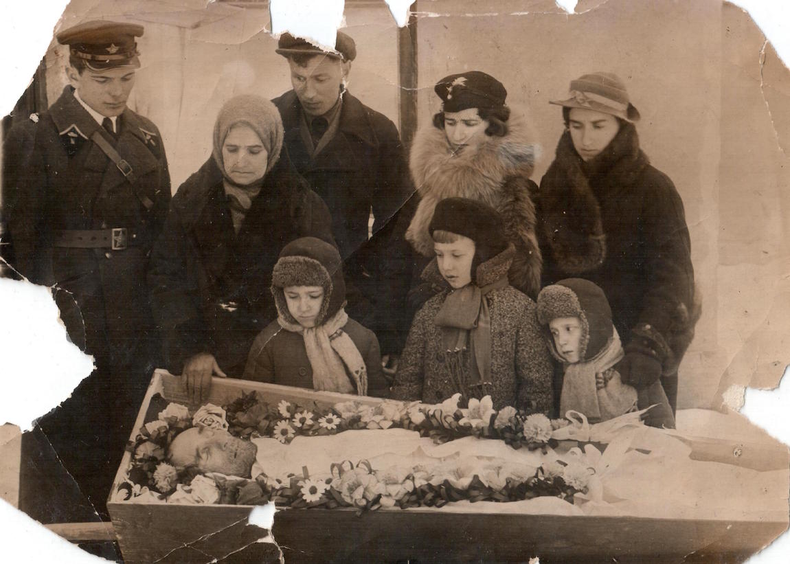 Înmormântarea străbunicului Ilia Fișman. Văduva Elizaveta Platonova (a doua din stânga), străbunica lui Ivan, alături de rude și nepoți. „Să te fotografiezi cu răposații erau o practică comună în anii ’30, în URSS”, spune Ivan Sveatcenko. Biisk, Rusia, 1937