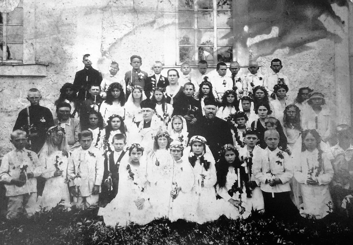 Prima împărtășanie a Adelei Cotelevici (primul rând, a patra din dreapta), mama Ekaterinei Iajgunovici, pe când avea opt ani. Stîrcea, circa 1930