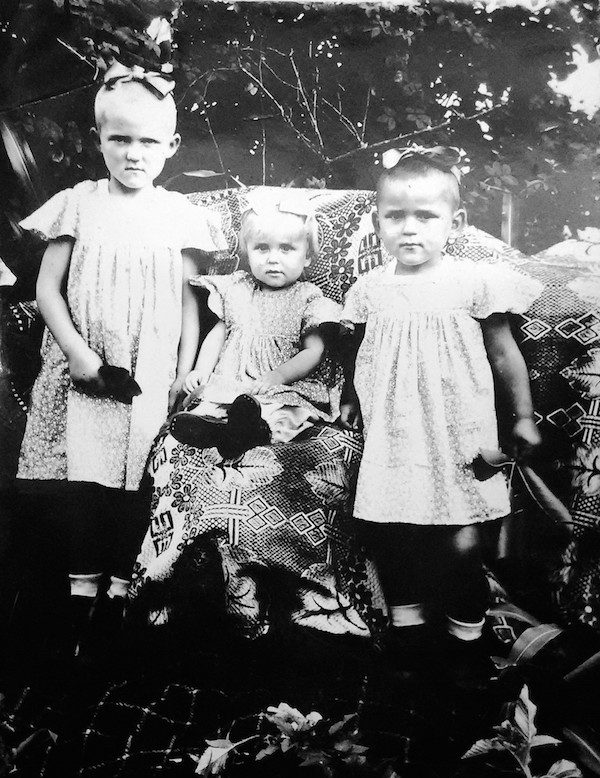 Ekaterina Iajgunovici cu fratele Nikolai și sora Petrunelea (de la dreapta spre stânga). „Fratele e îmbrăcat în rochie. Mama spunea: «De ce să cumpărăm haine noi? Le va purta pe cele ale fetelor»”, își amintește Ekaterina. Stîrcea, circa 1950