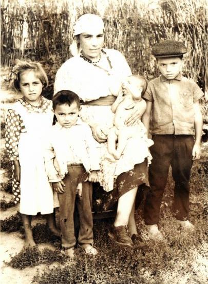 Mihai Alla, tatăl lui Marin, alături de câțiva dintre copiii săi. Satul Ursari, circa 1950