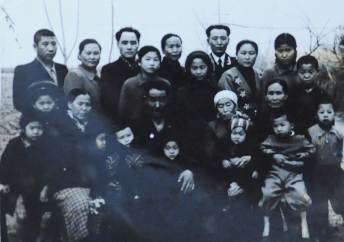 Elena Țoi, bunica Lidiei Tanasescu (primul rând, basma albă), cu o nepoțică în mâini, alături de rude la o nuntă coreeană.
