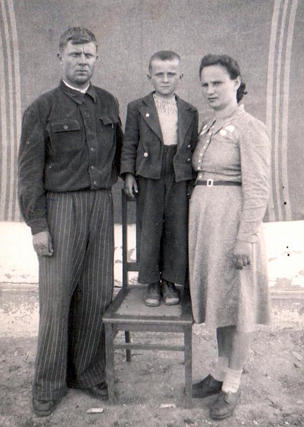 Ivan Ostaficiuc pe când avea 4 ani, cu părinții Andrei și Vera. Goleni, circa 1950