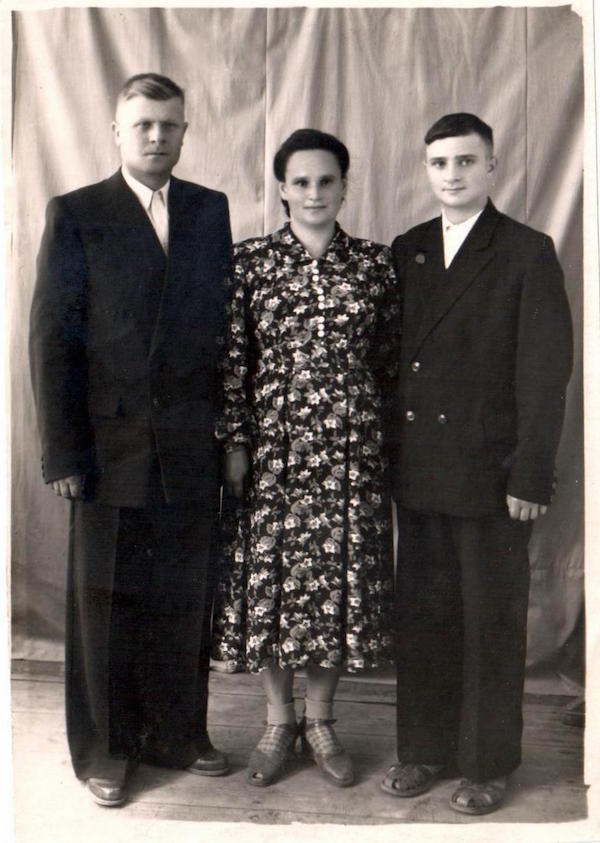 Ivan Ostaficiuc cu părinții, după absolvirea clasei a 9-a. Goleni, circa 1960