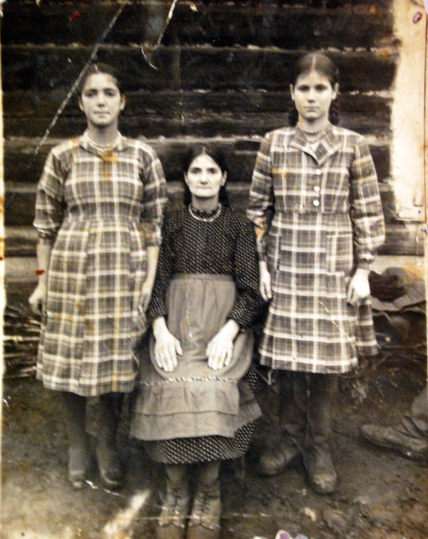 Lina Koeva, mama Marinei Pșenic (dreapta), sora Eudochia care a decedat în Siberia (stânga), Varvara, mama surorilor (în mijloc). Altai, Siberia, 1951