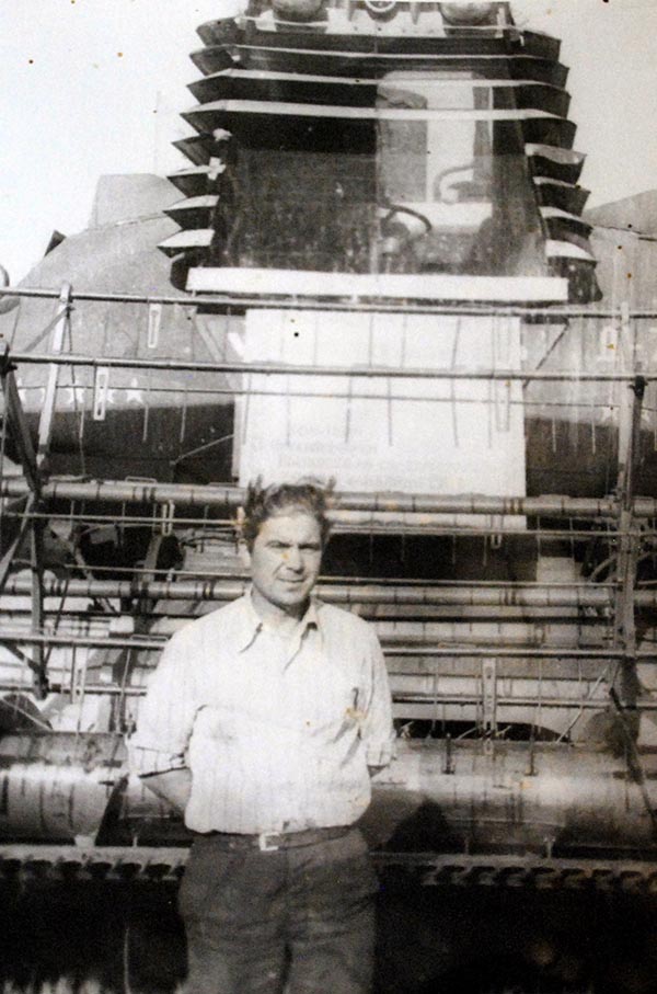 Pavel Minkovski, tatăl Marinei Pșenic, lucrând în câmp. Ursoaia, circa 1970