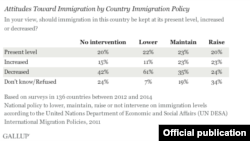 Cifrele sînt parte a răspunsurile date de peste 183 de mii de adulți, intervievați între 2012-2014 în 142 de țări. Dintre acestea, 76 au politici menite să mențină actualele nivele de imigrație, 26 urmăresc să le micșoreze, 19 doresc să le sporească, 15 au politici de neintervenție și 6 nu furnizează nici o informație asupra politicii urmate. În toate regiunile majore ale lumii, cu excepția Europei, unde opinia publică înclină sever spre o descreștere a imigrației, există o percepție pozitivă despre fenomenul în sine.