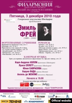 Am început să fac cercetări în arhivele de la St. Petersburg, unde am găsit multe lucruri și mi s-a părut foarte interesant, fiindcă este adesea o muncă în de detectiv… Practic, am găsit articole în Ruskaia Muzikalnaia Gazeta, o publicație de muzică foarte importantă; articole din 1910 cînd este descris felul în care Emil Frey a cîștigat concursul de pian și compoziție Nicolai Rubinstein. Am găsit, între altele, o fotografie cu Arthur Rubinstein, care a participat și el, cu [Aleksandr] Glazunov, care era președintele juriului; am găsit, de asemenea, alte articole, din perioada în care a trăit la Moscova, ca profesor la conservator, mai multe cronici ale concertelor sale…”