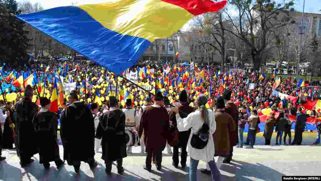 Organizațiile unioniste spun că marșul de pe bulevardul Ștefan Cel Mare și alte artere ale capitalei a fost cea mai amplă manifestare pentru unirea Republicii Moldova cu România din ultimii 25 de ani, la care au luat parte oameni din majoritatea localităților moldovene.