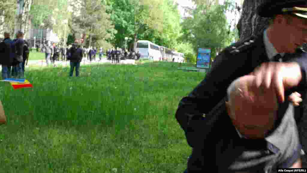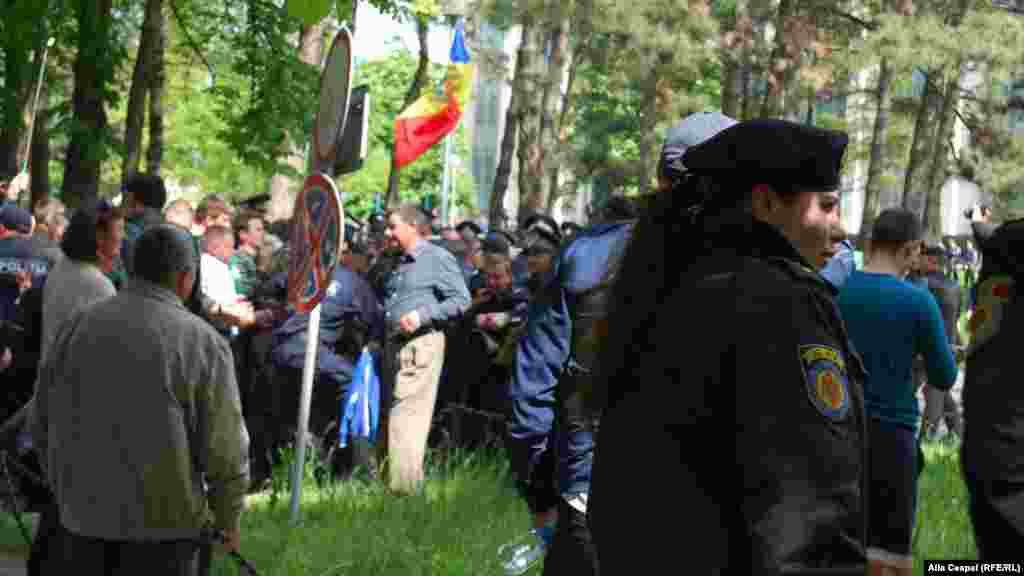 Participantii de la protestul antiguvernament din PMAN au inconjurat cladirea guvernului. Cel putin doi participanti la miting aveau pungi cu oua si chefir, dar nu le-au folosite. Protestatarii s-au retras din spatele cladirii, revenind in PMAN.