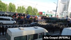 Altercații între protestari și oameni ai legii s-au înregistrat pe strada Bulgară, din centrul capitalei, unde se crede că ar fi locuința liderului PDM, Vlad Plahotniuc.