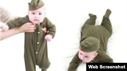 Utilizatorii de internet au descoperit că există uniforme ale Armatei Roșii din al Doilea Război Mondial și pentru nou-născuți. Costă 950 de ruble (14,50 dolari), și e vorba d eo salpoetă și de o șapcă de soldat cu stea roșie.