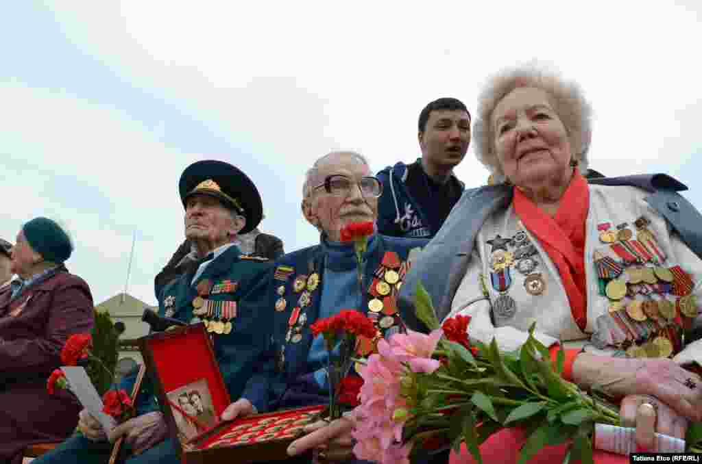Mii de simpatizanţi şi membri ai partidelor de stânga au mărşăluit astăzi prin centrul Chişinăului şi au depus flori la Memorialul "Eternitate", marcând astfel Ziua Victoriei în cel de-al Doilea Război Mondial. Cu jerbe de flori au venit oficiali şi diplomaţi străini.