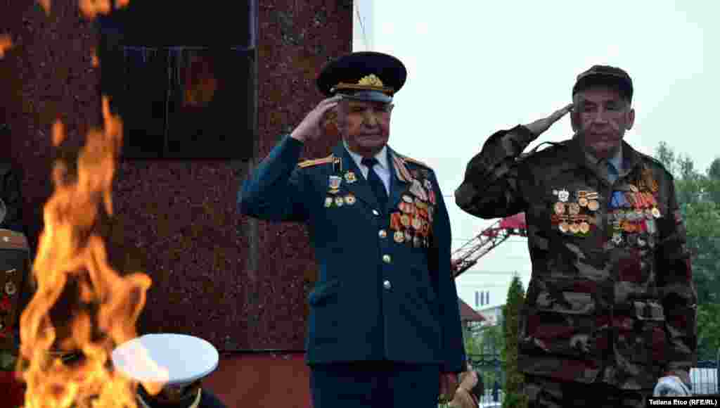 Mii de simpatizanţi şi membri ai partidelor de stânga au mărşăluit astăzi prin centrul Chişinăului şi au depus flori la Memorialul "Eternitate", marcând astfel Ziua Victoriei în cel de-al Doilea Război Mondial. Cu jerbe de flori au venit oficiali şi diplomaţi străini.