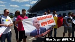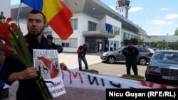 La ora sosirii avionului cu delegația Federației Ruse la bord, pe Aeroportul Internațional Chișinău mai mulți polițiști erau deja dislocați. Atât grupul de protestatari, constituit din câteva zeci de tineri, reprezentanți ai organizațiilor și partidelor unioniste, cât și presa, nu s-a putut apropia de terminalul VIP al aeroportului. Asta nu a împiedicat însă protestatarii să scandeze.