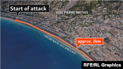 Poliția franceză a spus că suspectul din atacul de joi a parcurs cam doi kilometri prin mulțime, cu un camion de mare tonaj, înainte să fie oprit.