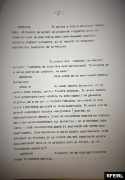 NARRATOR: În partea a doua a emisiunii Oameni, Idei, Atitudini de astăzi vă prezentăm fragmente dintr-un interviu luat de publicaţia americană Newsweek poetului sovietic Evgheni Evtuşenko, şi el deputat în Congresul deputaţilor poporului de la Moscova.