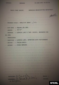 Fragment din emisiunea „Oameni, Idei, Atitudini” din 22.01.1991. Editor: Traian Bratu