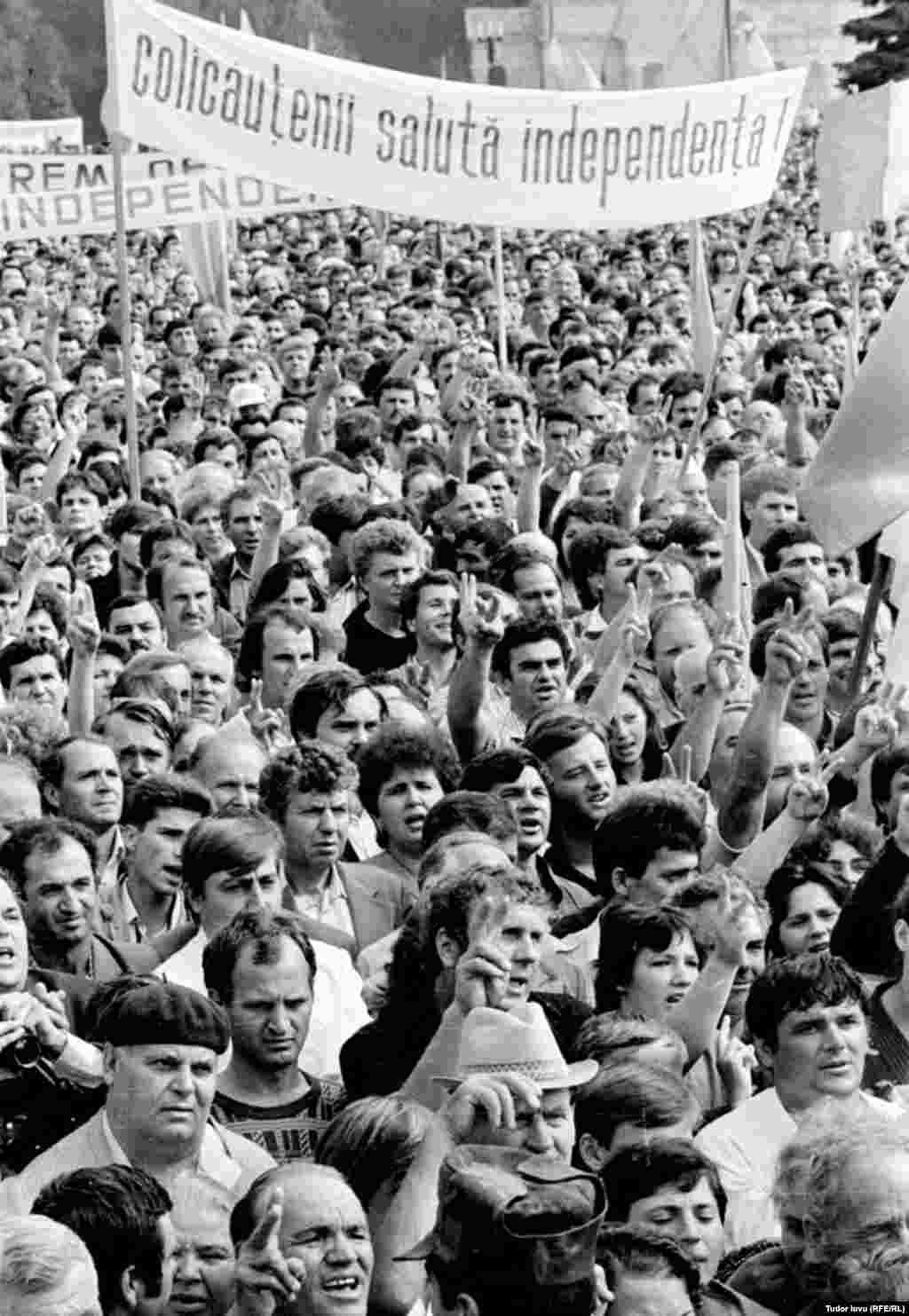 La 27 august 1991, Parlamentul Republicii Moldova a adoptat Declaraţia de Independenţă, iar mii de oameni au venit la Marea Adunare Naţională convocată cu acest prilej. Fotografii de Tudor Iovu